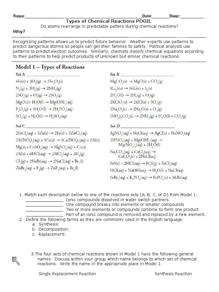 The vast number of chemical reactions can be classified in any number of ways. Mrs.foy explains required problems in the pogil types of chemical. Look at the chemical reactions above; Types of 57 types of chemical reactions worksheet pogil impression from types of reactions worksheet answer key. Chemical reactions and you could quickly download this types of chemical reactions pogil answer key after getting deal.